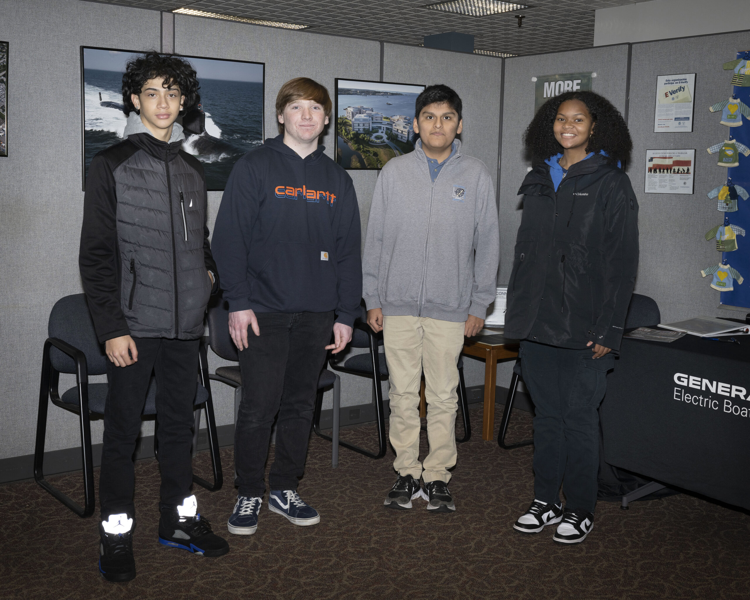 The students pictured above and below are representative of both Harvard H. Ellis Technical High School and Ella T. Grasso Southeastern Technical High School. They participate in their school’s work-based learning programs, where every other two weeks they are employees of Electric Boat and prepare to work full time after graduation.