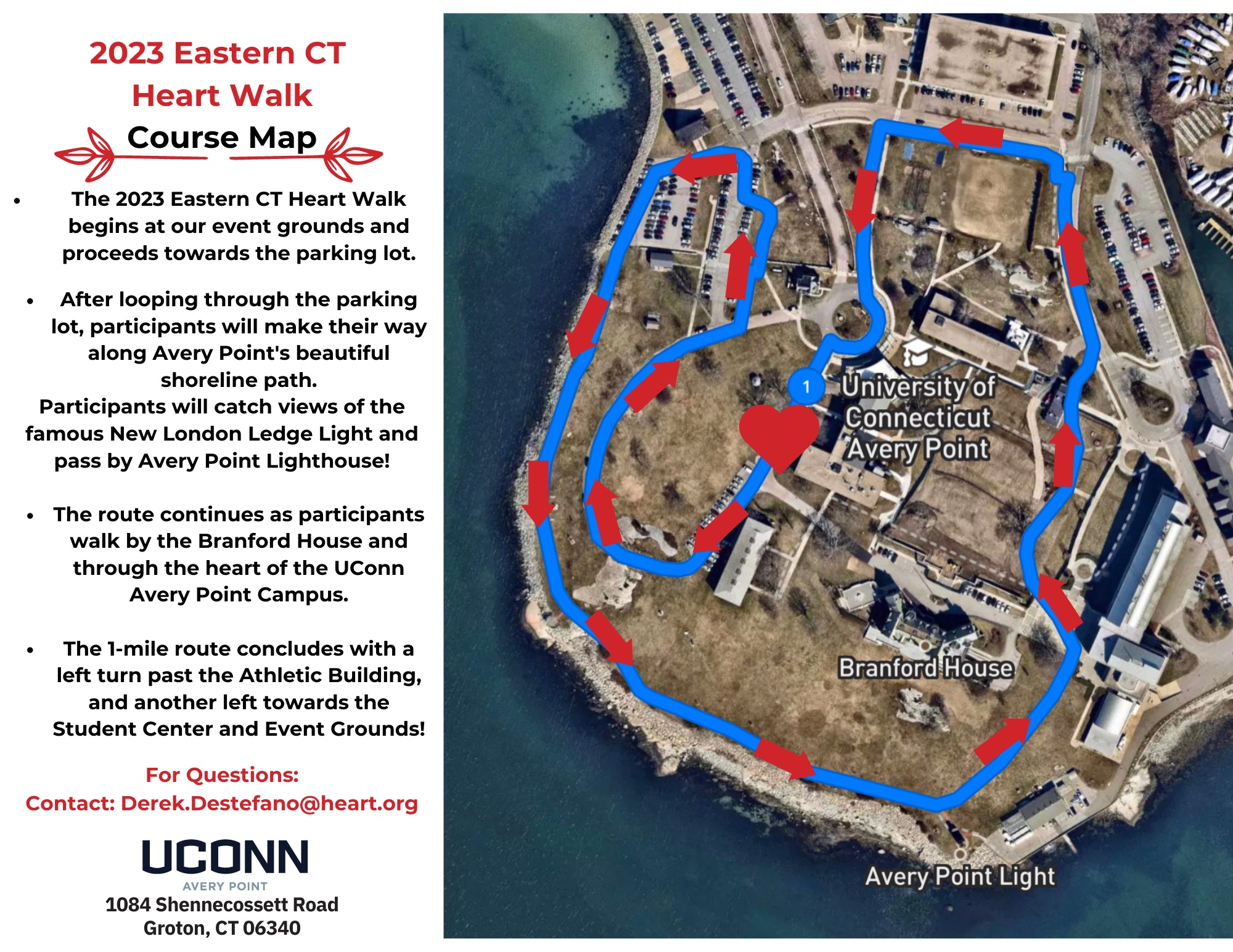 The Eastern Connecticut Heart Walk is held to raise money for heart disease and stroke—the number one and number five leading causes of death in the United States. This initiative continues this year with the 2023 Eastern Connecticut Heart Walk, taking place on Sunday, October 1, 2023, at UConn’s Avery Point Campus. Andrew Bond, Vice President of Planning, was named Chairman again this year, and will proudly lead Electric Boat (EB) in our role as event sponsor.