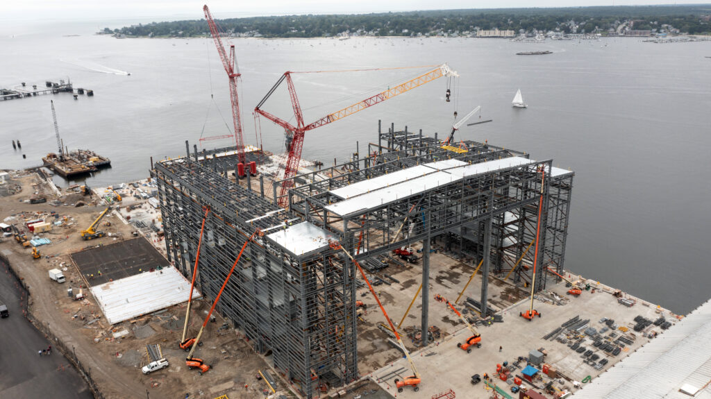 The building is now almost 50% structurally complete and on track to receive the first Columbia module from Quonset Point in December 2023. Today, each of 6 super modules of the lead ship of the Columbia class – the largest and most highly outfitted modules we’ve ever constructed – are under construction at Quonset Point.